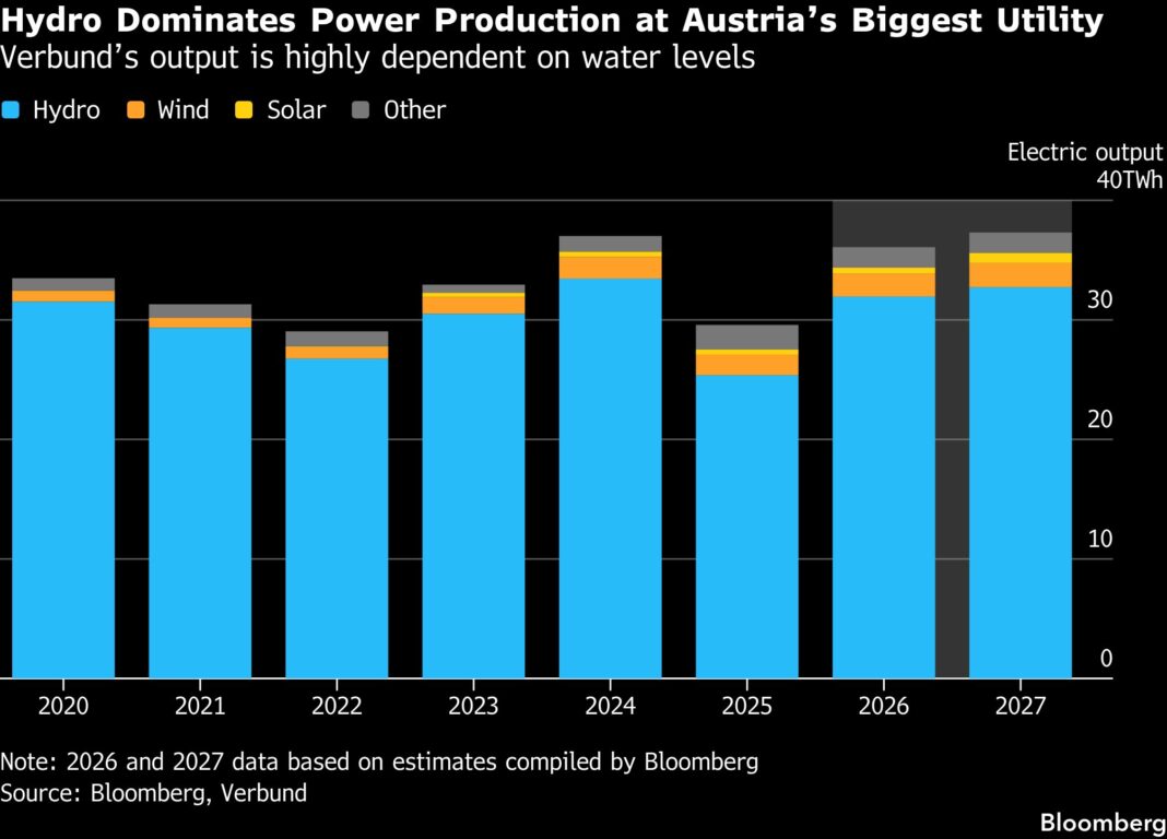 The concept is sharpening concerns in Vienna that reliance on hydropower — long seen as a pillar of energy security — may become a vulnerability just as conflict-driven disruptions heighten the risks of depending on imported fuels. For a country whose second-most valuable listed company — state-controlled utility Verbund AG — generates about 90% of its electricity from hydropower, the implications are rippling from energy markets to credit ratings.