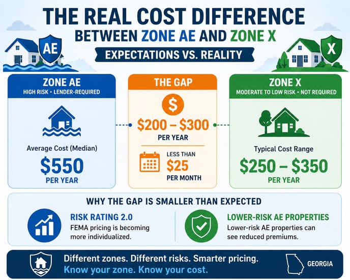If you are comparing Zone AE and Zone X in Georgia, the most important takeaway is this, the cost difference is often much smaller than people expect.