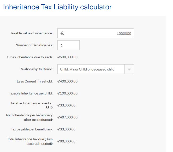 Assuming they haven’t already used their lifetime inheritance thresholds, they could each face a tax bill of around **€66,000**.