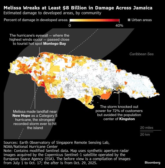 Melissa Jamaica Damage Seen Costing Insurers Up to $3 Billion