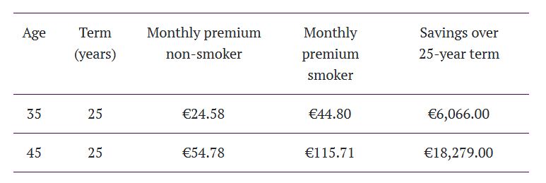 In case you’re skimming: you have to be off the cigs to get cheaper mortgage protection.