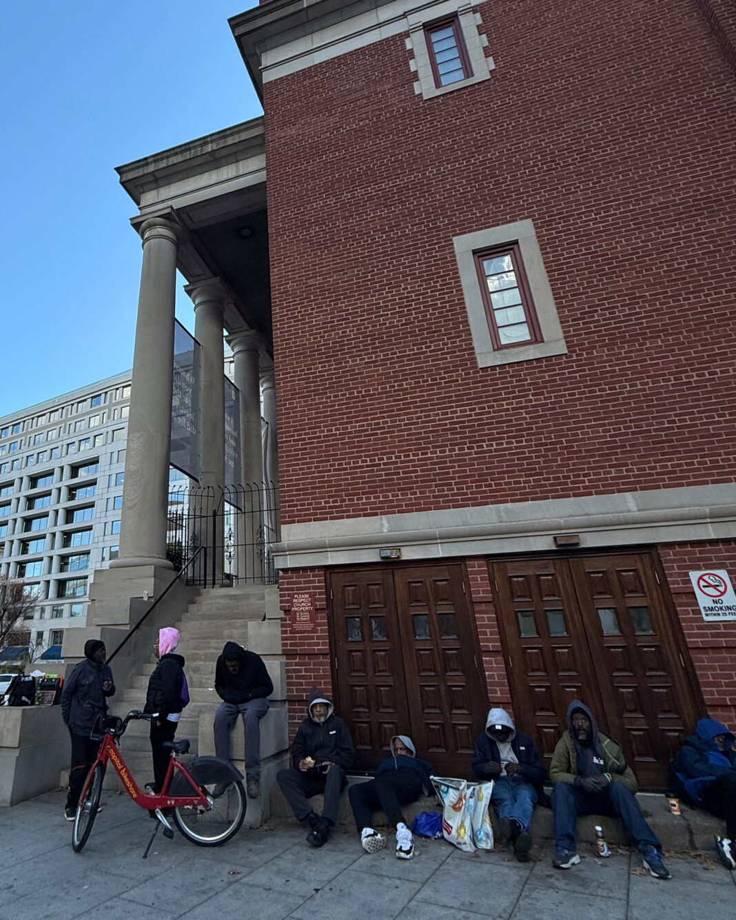 Churches are safe ground for sheltering amid a widespread crackdown on street homelessness in Washington, D.C., homeless people say. As long as they stay off federal land, people are allowed to sleep and congregate at some churches during the day and at night. (Angela Hart/KFF Health News)